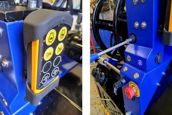 The hydraulically powered, high pressure pivoting hose reel holds 90m of 1/2″ jetting hose, and as standard has variable reel speed control allowing the rate of hose retrieval to be varied. This is particularly useful when root cutting or descaling. The antifreeze tank sits neatly behind the front panels, easily accessible and with tank level indicator clearly visible. The pivoting hose reel helps in feeding the high pressure hose into the drain/sewer.